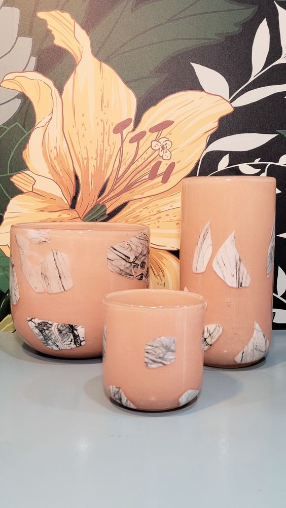 Introducing the Sumi Pot Collection, a trio of thick-walled glass containers that exude elegance and versatility. Each piece in the collection is a testament to the beauty of functional art, with a peach hue and marbling designs that add a touch of sophistication to any room. These pots are not only perfect for holding candles, casting a warm glow through their textured walls, but they also serve as charming flowerpots, bringing life and color to your space.