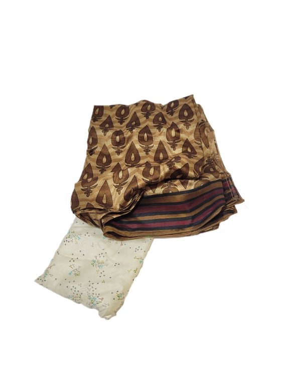 Introducing our stunning Vintage Silk Sari Scarf, the perfect accessory to add a touch of elegance and sophistication to any outfit. Made from high-quality silk, this scarf features intricate patterns and designs that are both unique and timeless. Each scarf is handmade from recycled vintage saris, giving it a one-of-a-kind look that is truly special.Whether you're dressing up for a night out or adding a pop of color to your everyday wardrobe, this Vintage Silk Sari Scarf is the perfect choice. It's lightweight and breathable, making it ideal for any season. Draped over your shoulders or wrapped around your neck, this scarf will add a touch of luxury to any outfit.Not only is this scarf beautiful, but it's also sustainable. By using recycled materials, we're reducing our impact on the environment and giving new life to beautiful fabrics that would otherwise go to waste. So not only will you look good, but you can feel good knowing that you're making a positive impact on the planet.Don't miss out on this must-have accessory. Get your Vintage Silk Sari Scarf today and elevate your style to the next level!