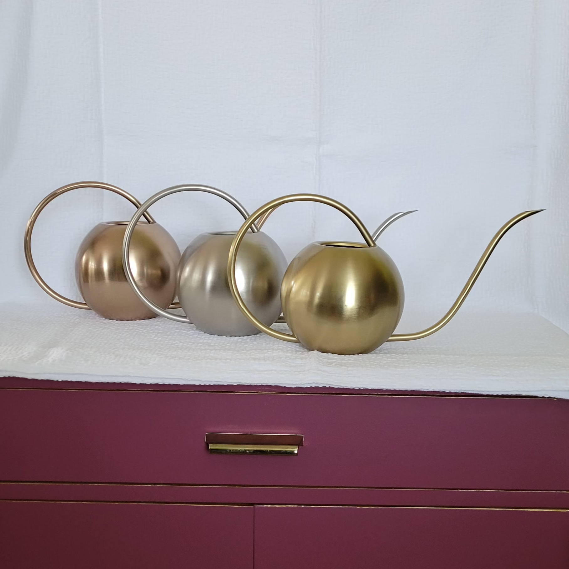 Welcome the spring season with our exquisite Watering Can, a perfect blend of functionality and style. Crafted with precision in small batches, this watering can is available in a choice of luxurious finishes: gleaming Gold, sleek Stainless, or radiant Rose Gold. Each finish adds a touch of sophistication to your gardening routine, making it a stylish accessory for both indoor and outdoor use. This watering can is not just a tool but a statement piece that celebrates the joy of gardening. Whether you’re tending to your balcony blooms or nurturing your backyard garden, it’s designed to bring elegance to every pour. Enjoy the beauty and practicality of our Watering Can, an essential for any green thumb. 🌱✨